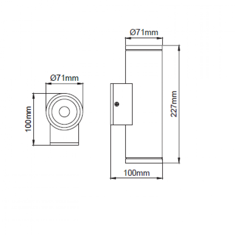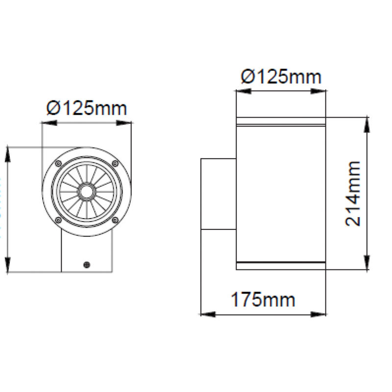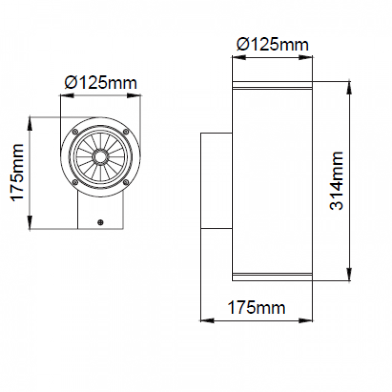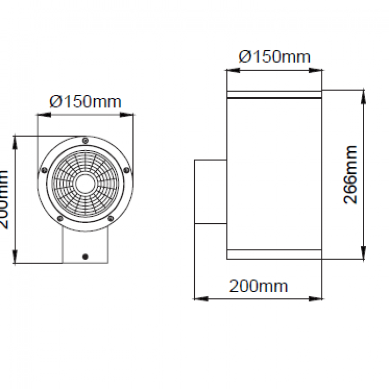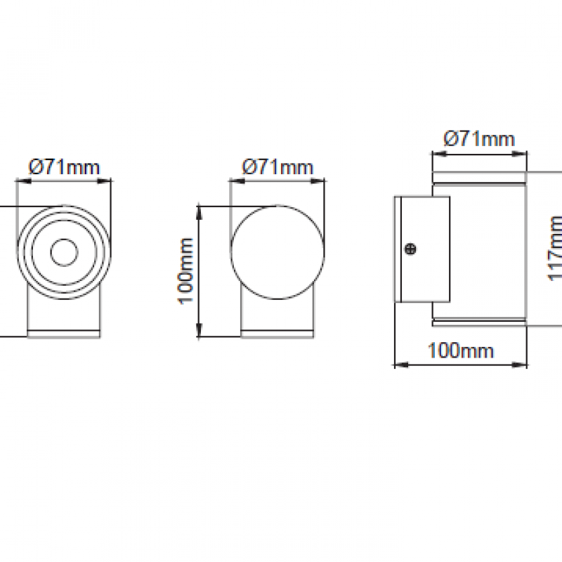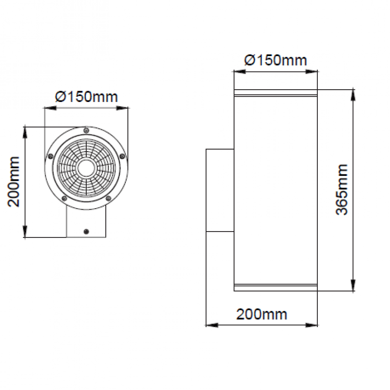 Ø150mm for 40W, Ø125mm for 28W, Ø71mm for 14W
